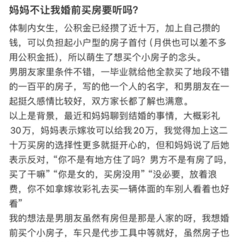 宁波股票配资 妈妈不让我婚前买房要听吗?